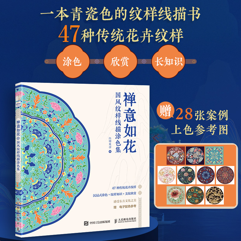 红糖美学 中国传统花卉纹饰图案 上色涂色集图书 禅意如花 人民邮电出版 花卉纹样 美术艺术绘画画集画册 国风纹样线描涂色集