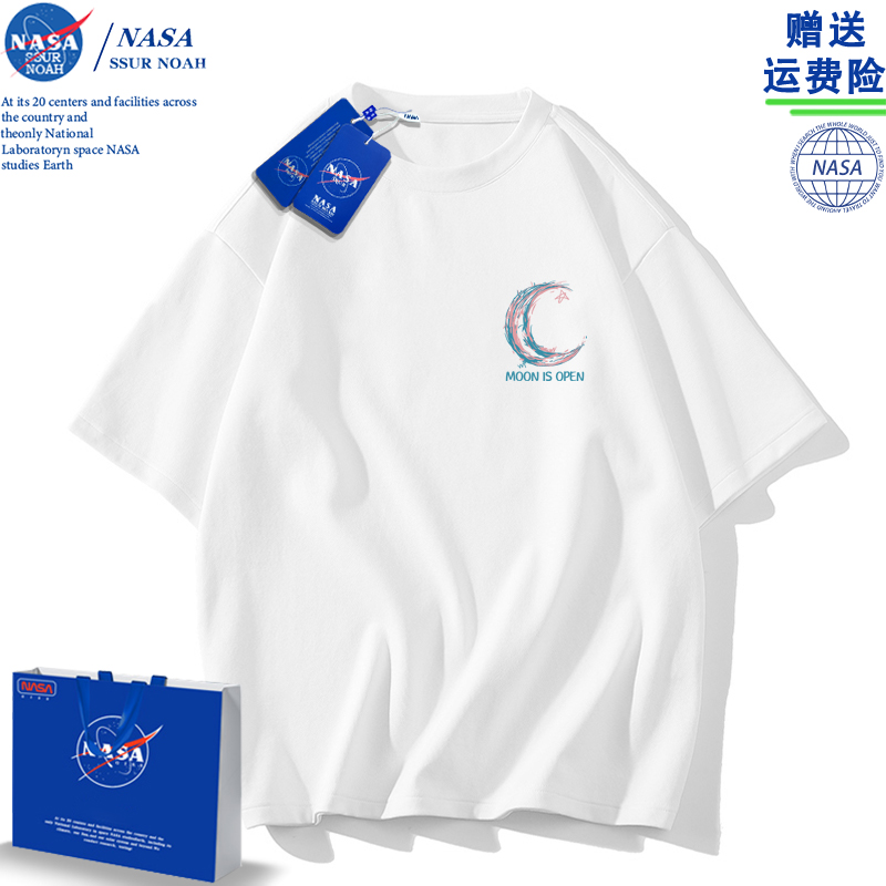 夏装 潮流设计感体恤女上衣情侣装 T恤男夏季 NASA联名涂鸦月亮短袖