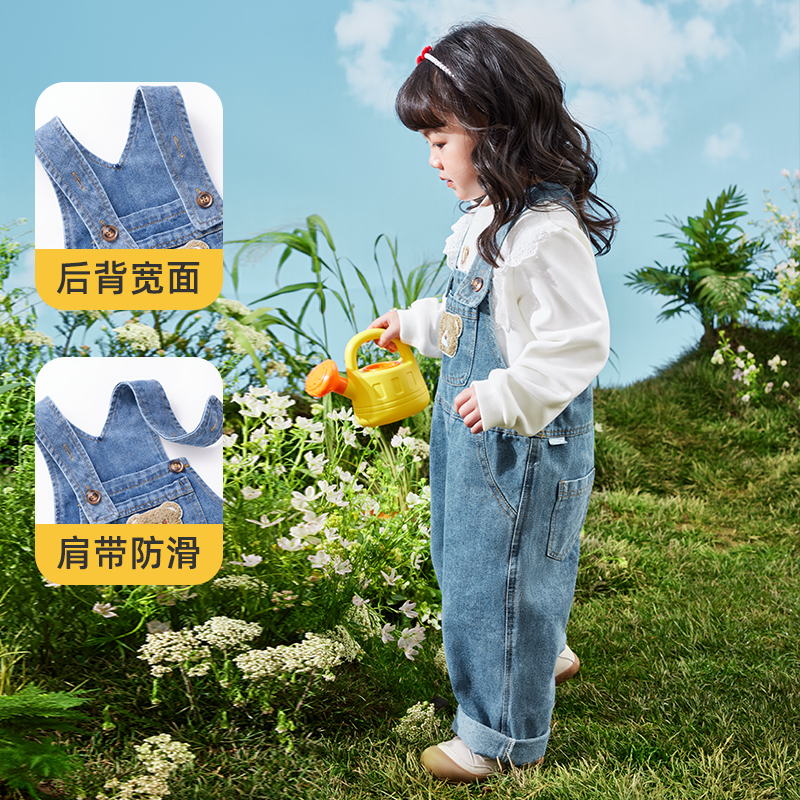 春装 子小熊牛仔裤 童装 一岁女童婴儿裤 小童春秋款 婧麒女宝宝背带裤