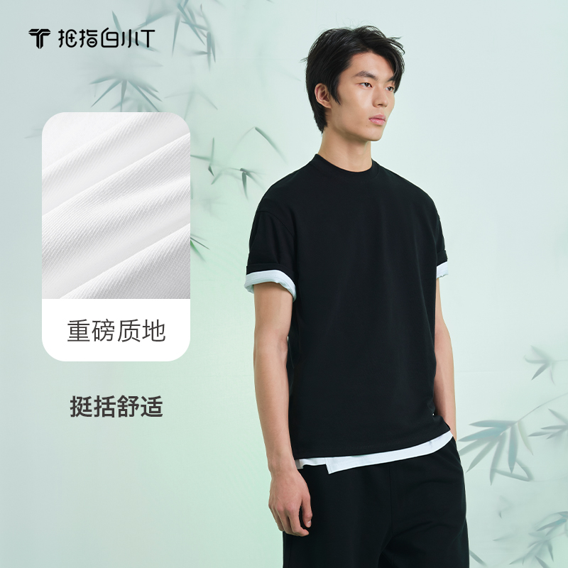 重磅纯棉宽松体恤 中国风潮上衣夏季 拇指白小T圆领短袖 T恤男女同款