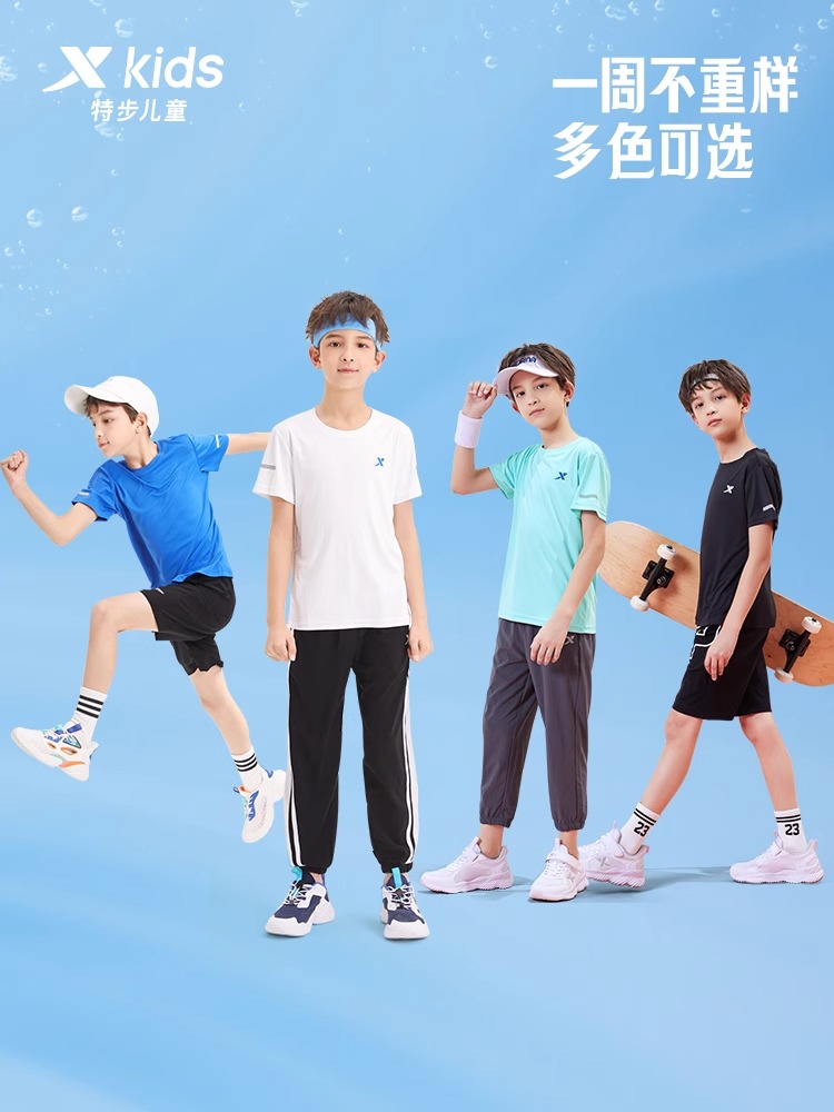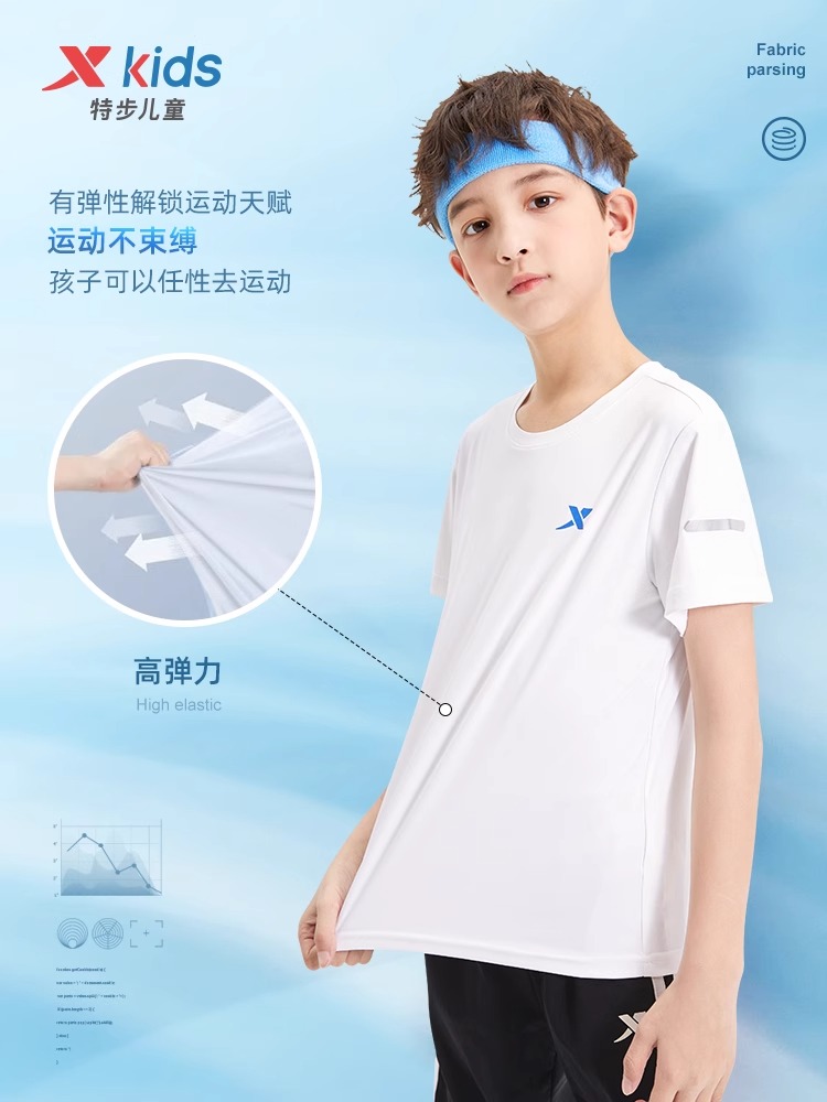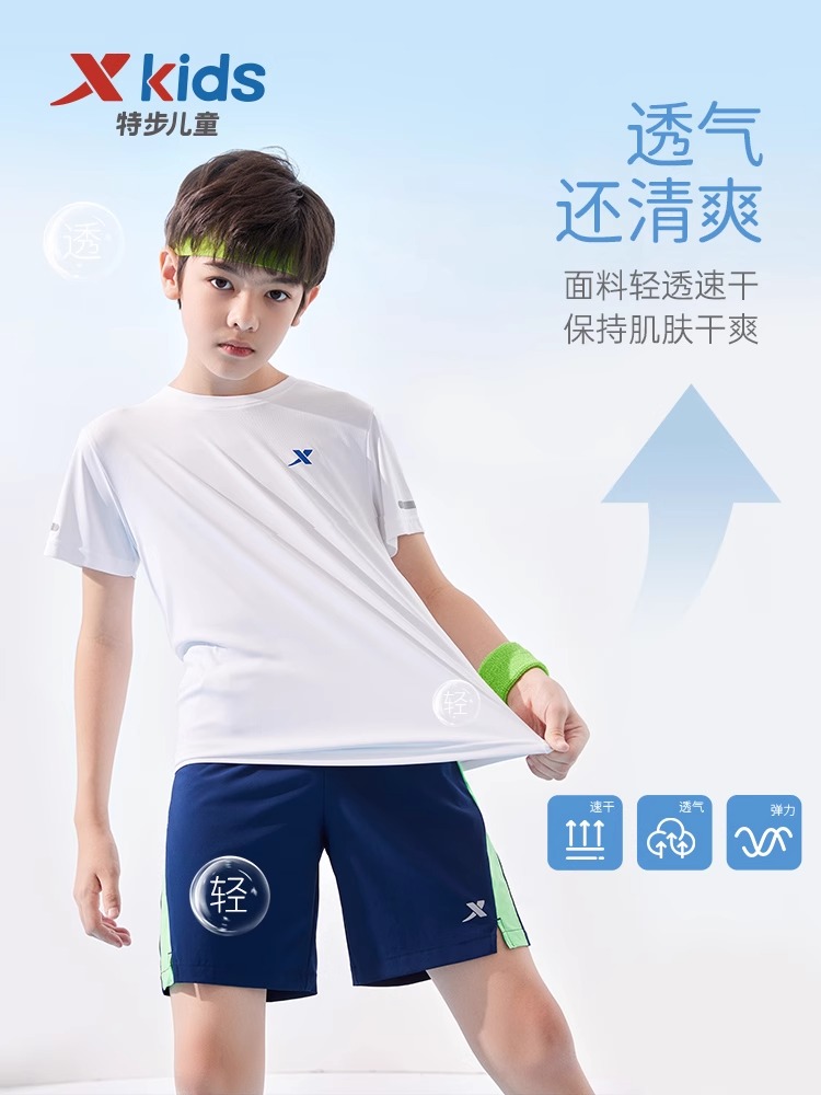 儿童速干衣中大童透气休闲夏装 特步童装 新款 T恤2025秋季 男童短袖