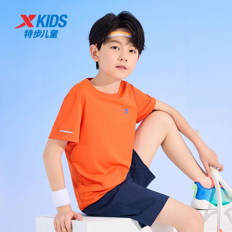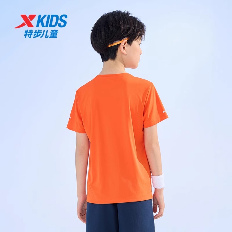 大童男孩休闲夏装 特步童装 儿童速干短袖 新款 男童运动T恤2025秋季