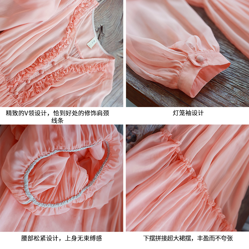 含绵羊毛桑蚕丝拼接中长裙法式 新款 温柔风 Moda连衣裙25秋季 Vero
