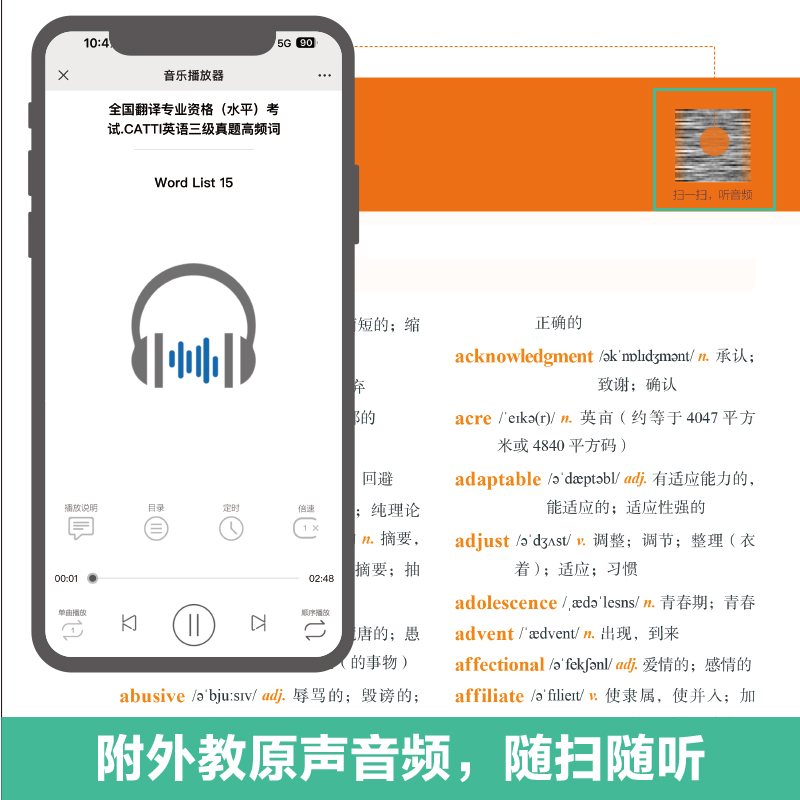 口笔译综合适用 水平 赠音频 全国翻译专业资格 考试 基于CATTI综合能力历年真题整理 CATTI英语三级真题高频词汇