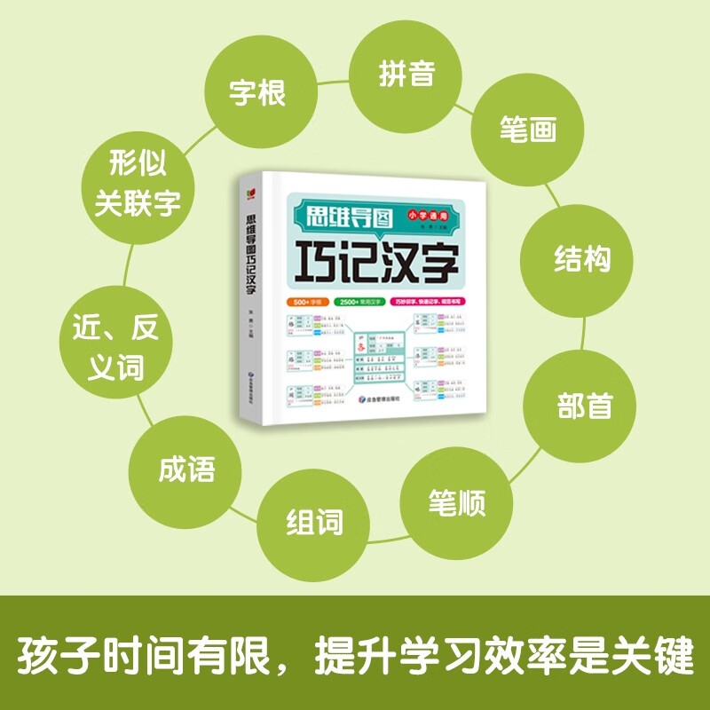 思维导图巧记汉字汉知简小学生识字认知偏旁部首结构组词成语同义词近义词快速记生字开花速写阅读拼音趣味行为游戏