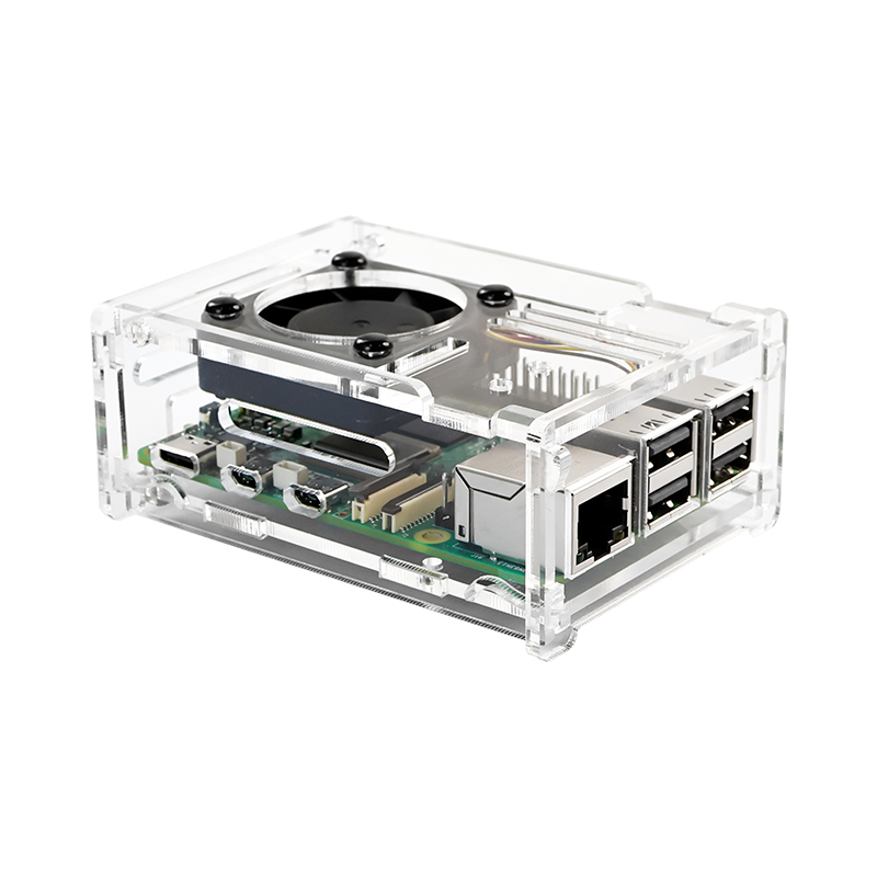 亚博智能 树莓派5代Pi5透明亚克力外壳保护PWM调速风扇主动散热器