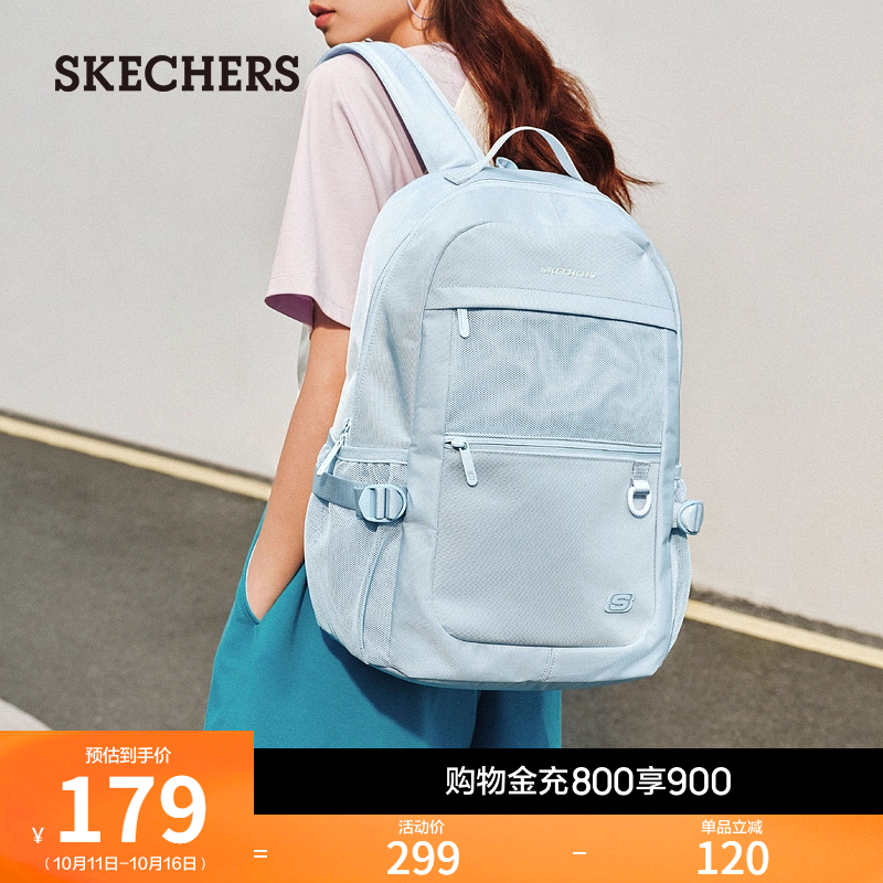 Skechers斯凯奇男女同款 学生纯色书包大容量户外旅行双肩包电脑包