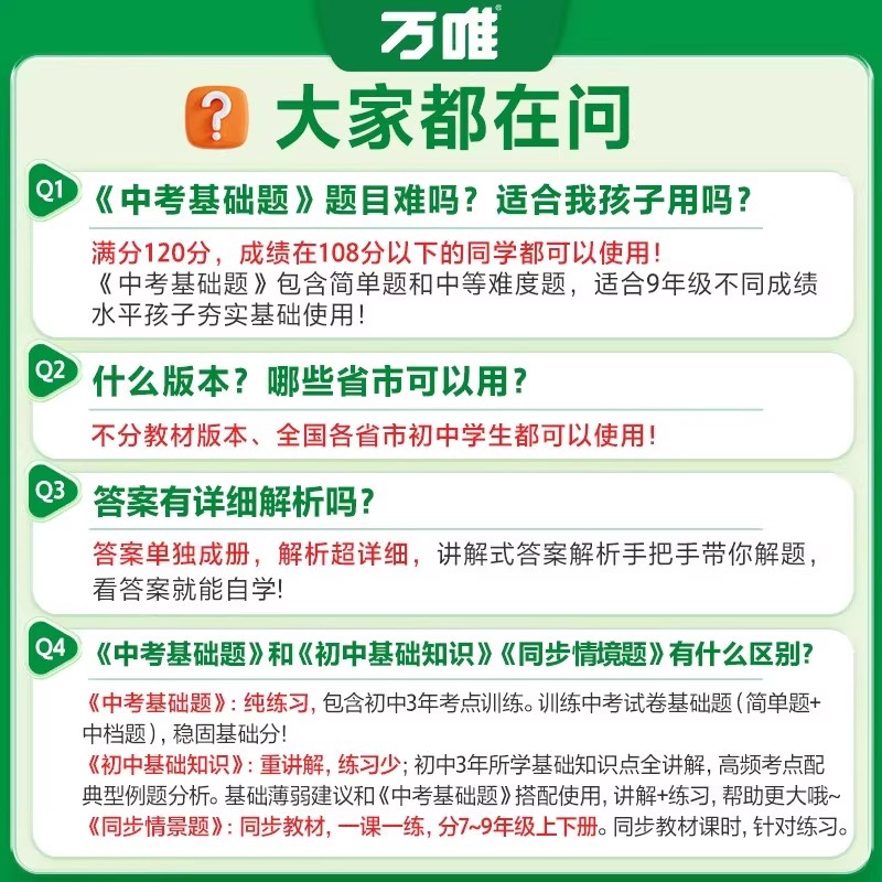 2026万唯中考基础题与新考法七八九年级上下册语文数学英语物化生政史地全套初一三初中基础知识同步专项训练总复习初二会考资料