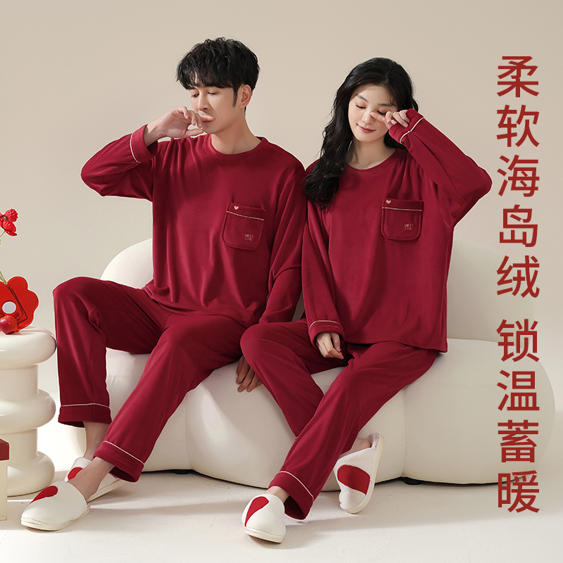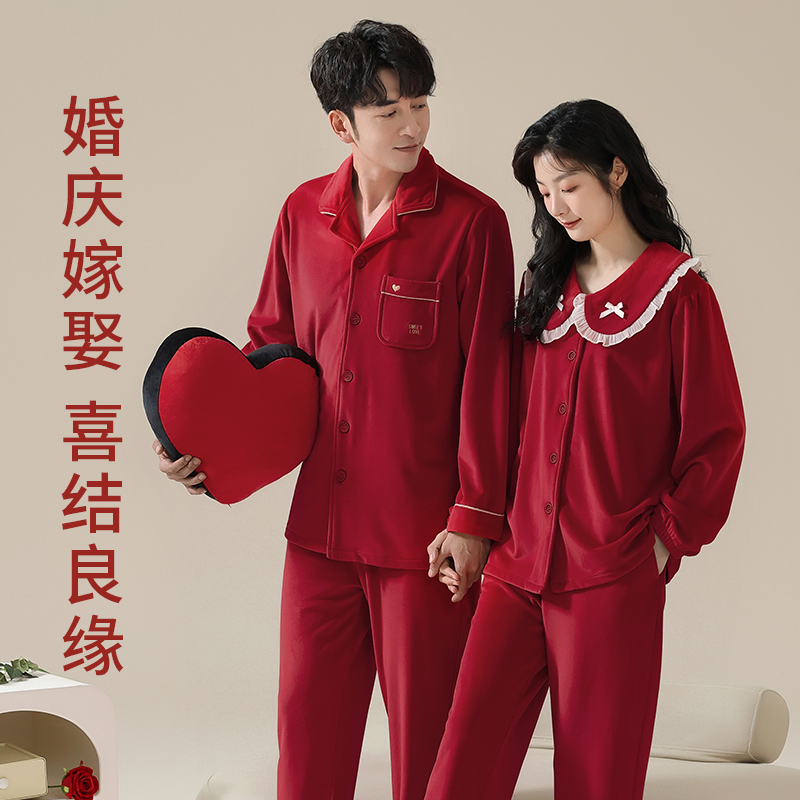 男红色本命年家居服 冰丝长袖 乐姿梦睡衣结婚新婚情侣套装 女春秋季
