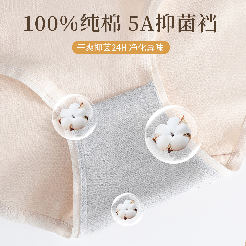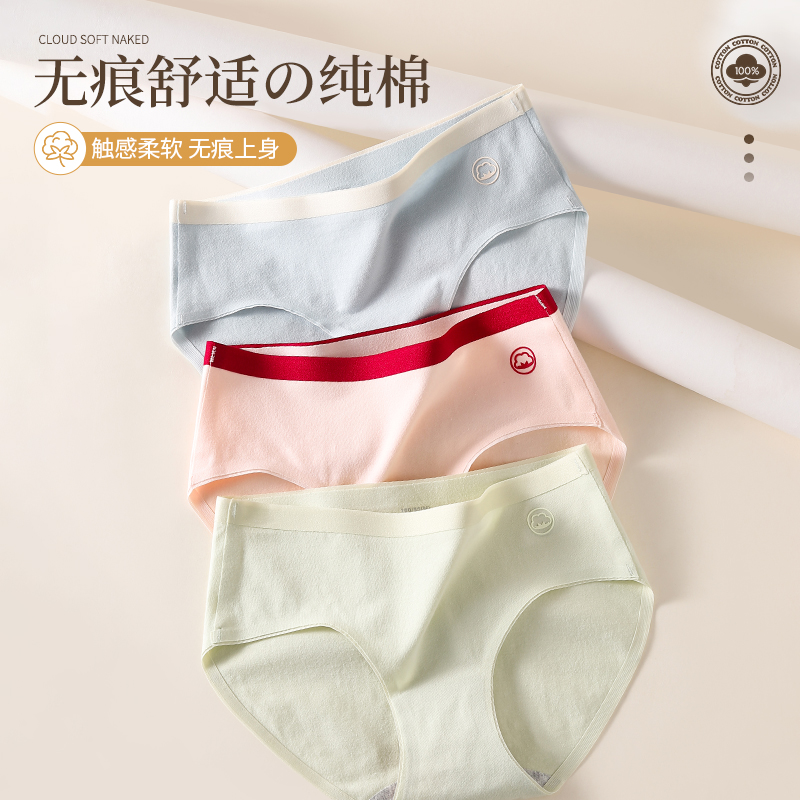 女士纯棉中腰女生内裤 不夹臀抗菌内裤 三角裤 新款 短裤 全棉时代内裤