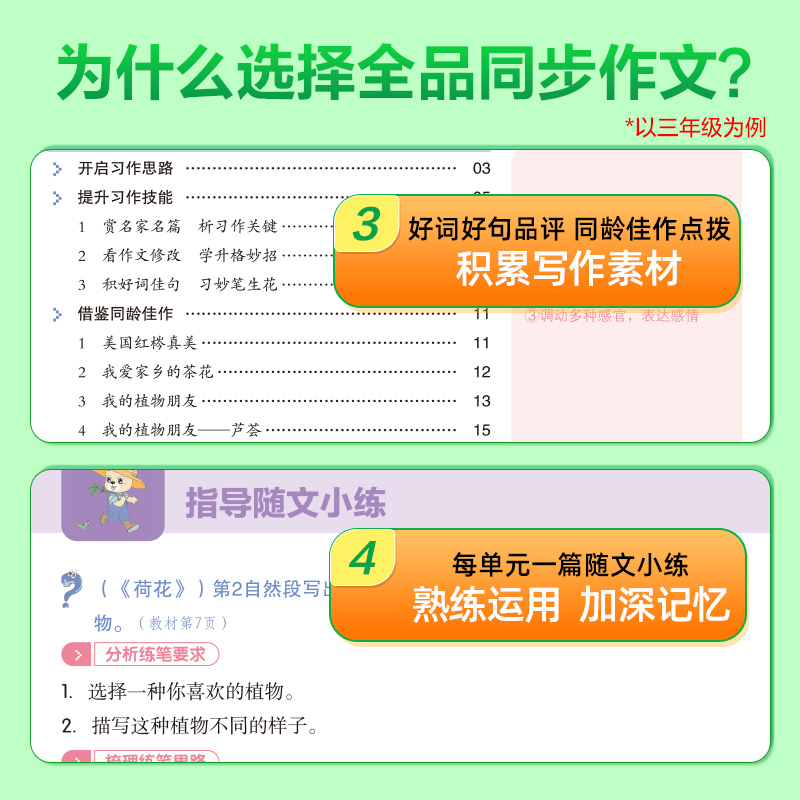 三四五六年级上下册AB版 老客福利款 小学3456年级满分作文练习册 作文素材全解 写作技巧阅读理解专项训练答题模板 全品同步作文