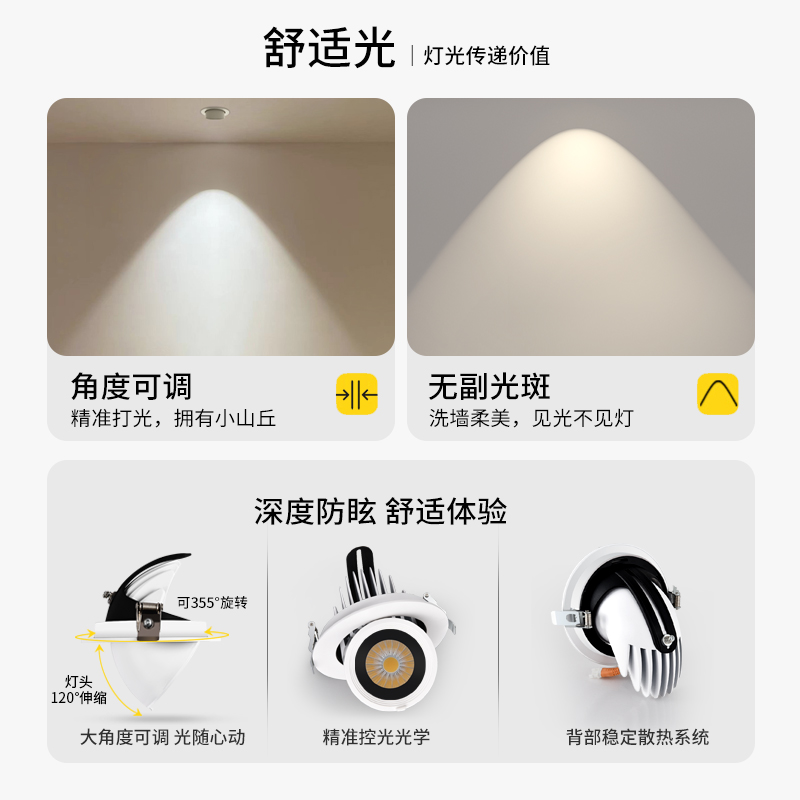 象鼻灯可调角度嵌入式 背景墙小山丘洗墙走廊过道照画led天花射灯