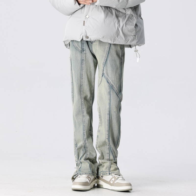 复古高街休闲长裤 男美式 新因素水洗做旧直筒牛仔裤 子 清仓款