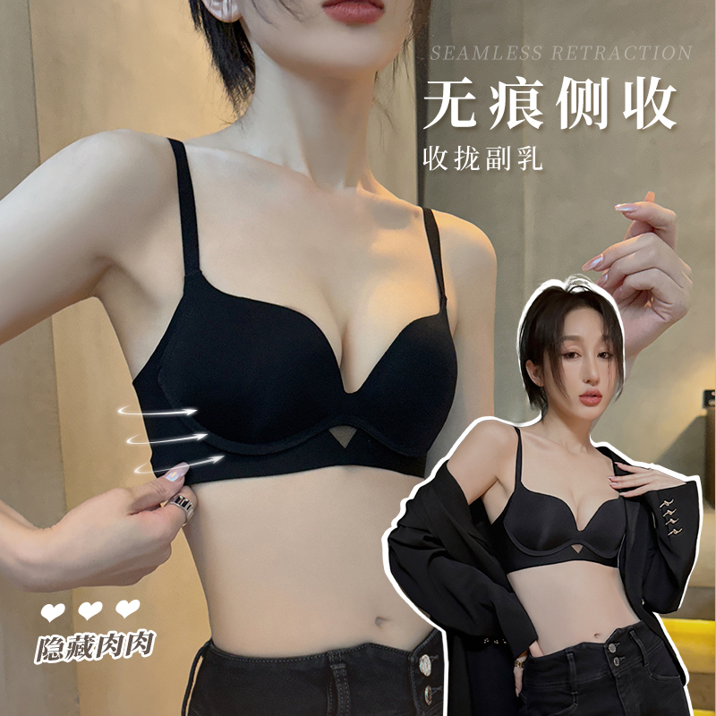 无痕内衣女小胸聚拢收副乳胸罩软钢圈上托防下垂秋冬舒适透气文胸