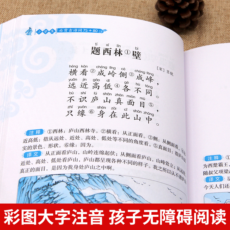 小学生四五六年级课外书古诗文大全小学通用阅读与训练75首经典 老师推荐 唐诗宋词HY 80首部编人教版 小学生必背古诗词75