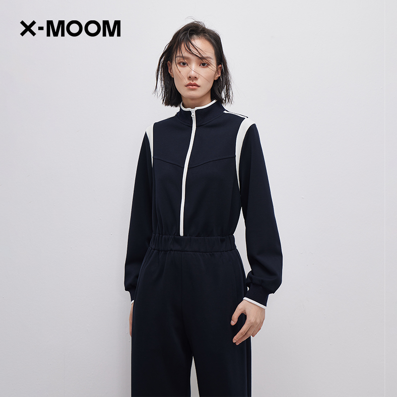商场同款 连体长裤 撞色运动风针织长袖 女 MOOM春秋新款