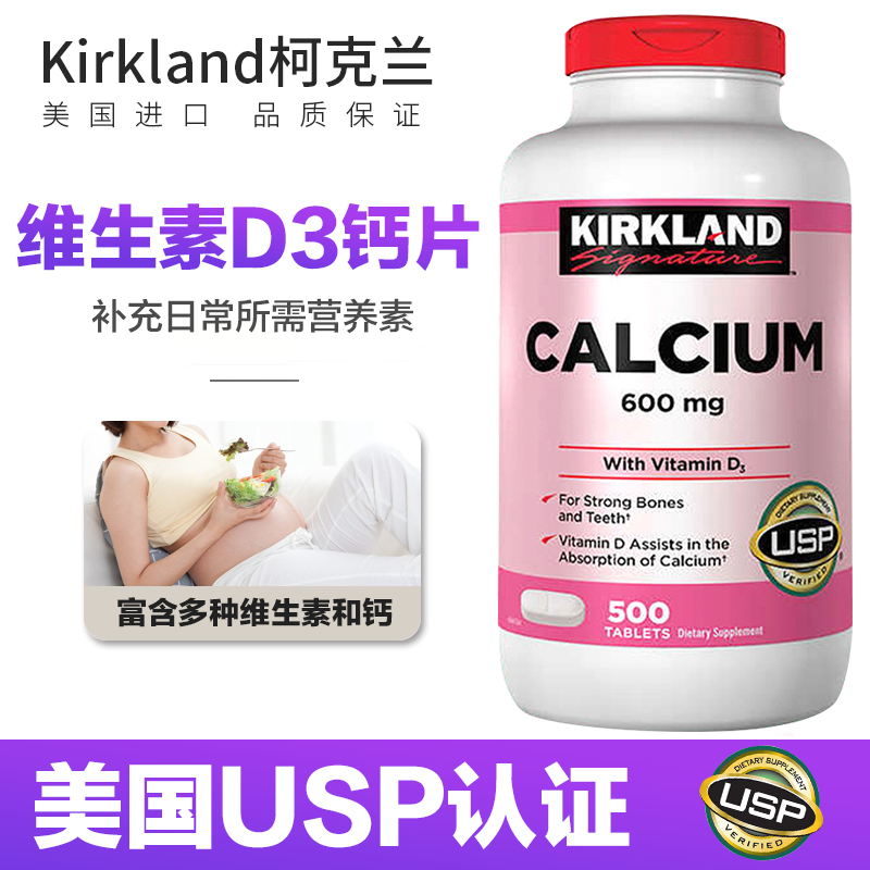 美国Kirkland柯克兰钙片维生素D3碳酸钙中老年成人孕妇补钙costco