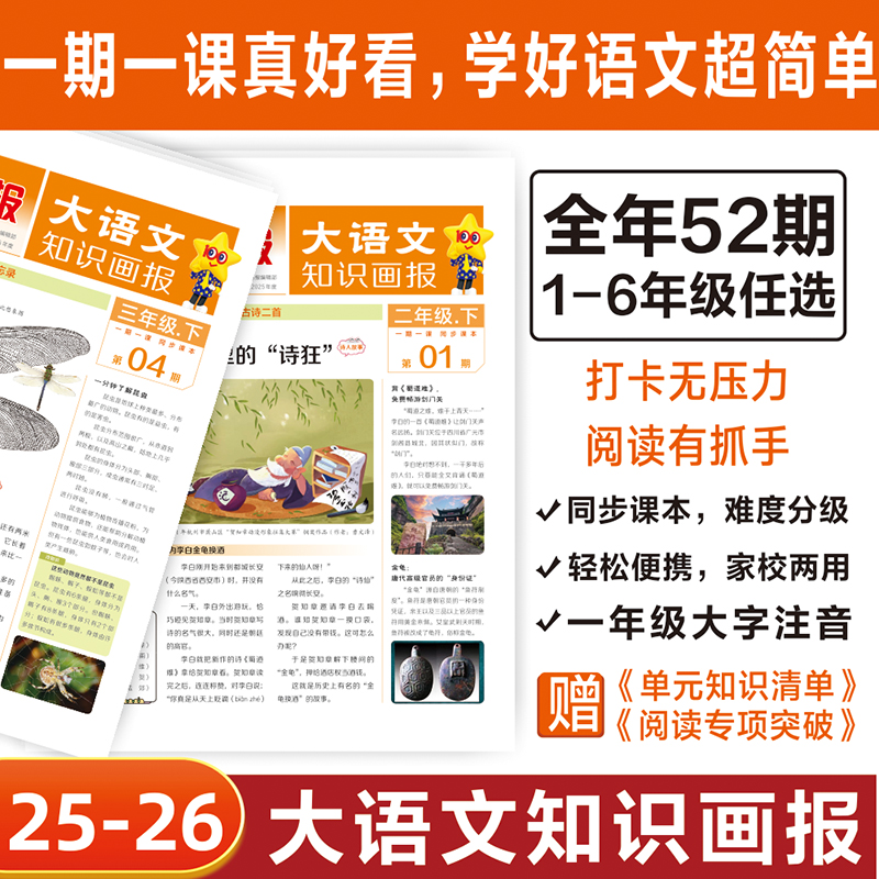 秋季 26年春季 学期订阅1年共52期小学语文一二三四五六年级天星教育杂志铺杂志订阅 大语文知识画报快乐学习报2025 8月现货速发