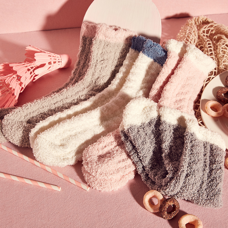 珊瑚绒袜子女冬半边绒加厚毛巾地板长月子袜冬季 秋冬居家保暖睡袜