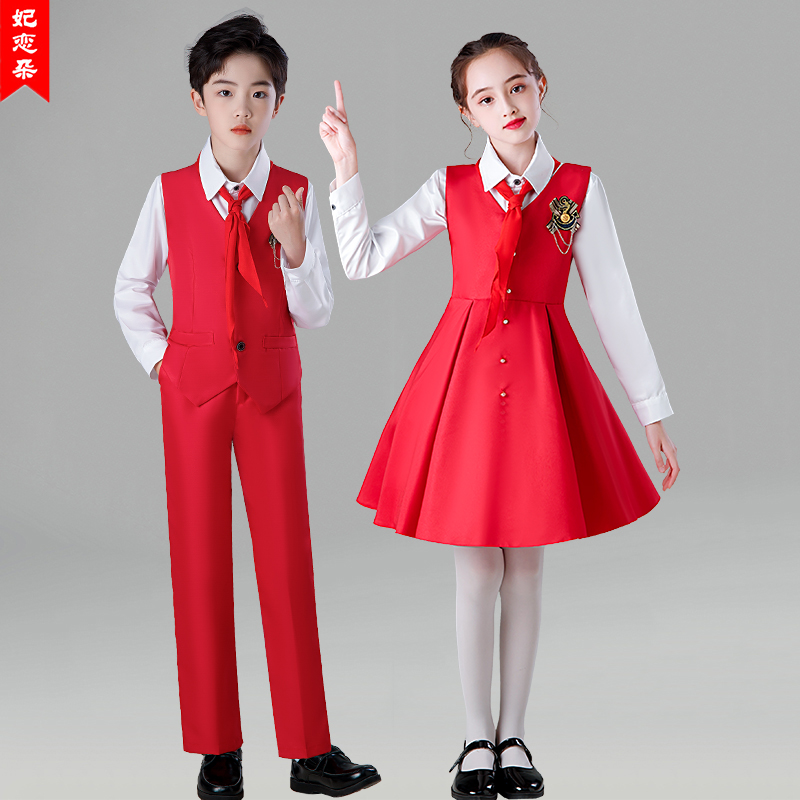 儿童合唱服男女童红色朗诵歌咏比赛服装 表演服 学生红旗手升旗仪式