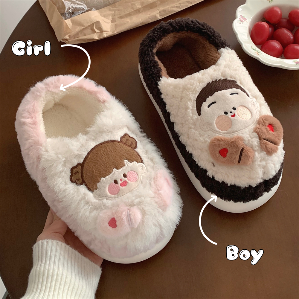 居家用防滑保暖厚底毛毛绒拖鞋 男女情侣款 外穿 棉拖鞋 买一送一冬季