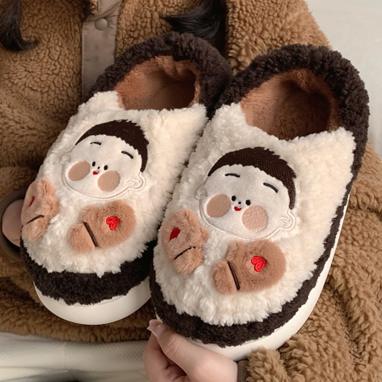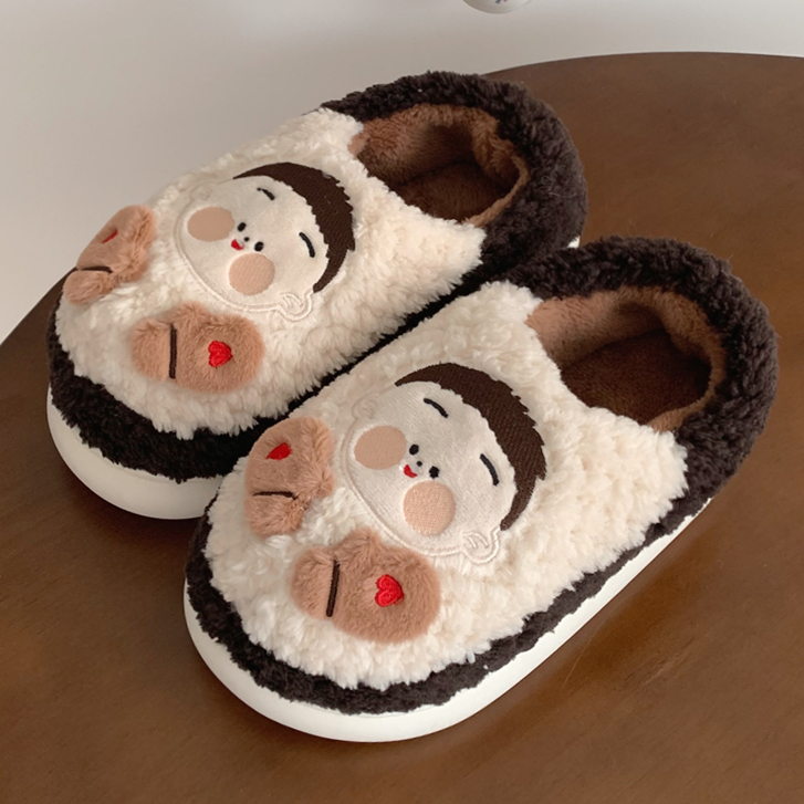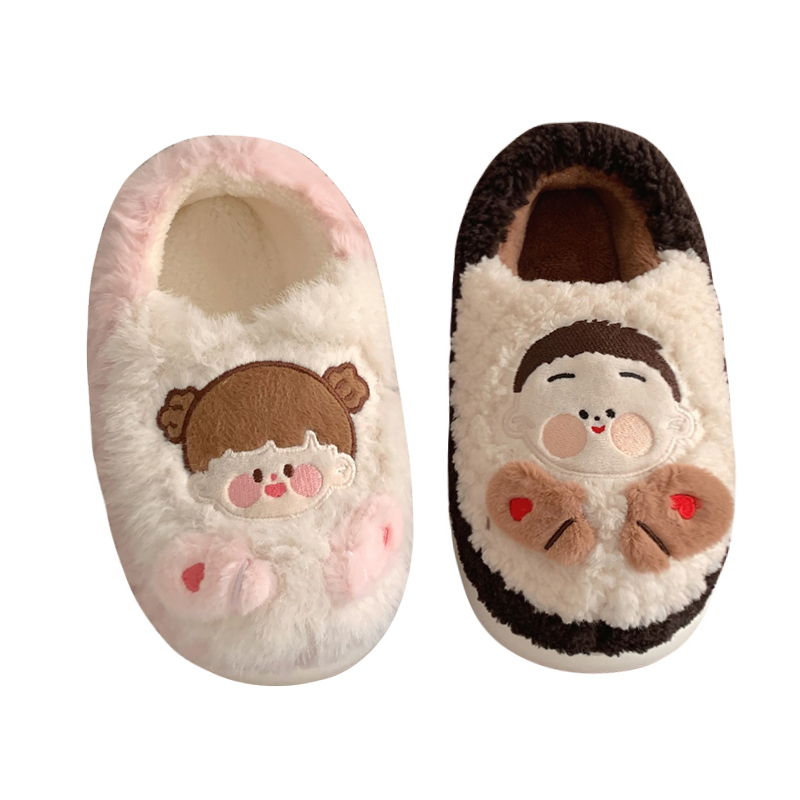 月子室内家居家防滑厚底踩屎感毛毛绒保暖情侣男 秋冬季 棉拖鞋 女款