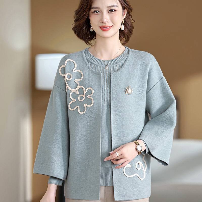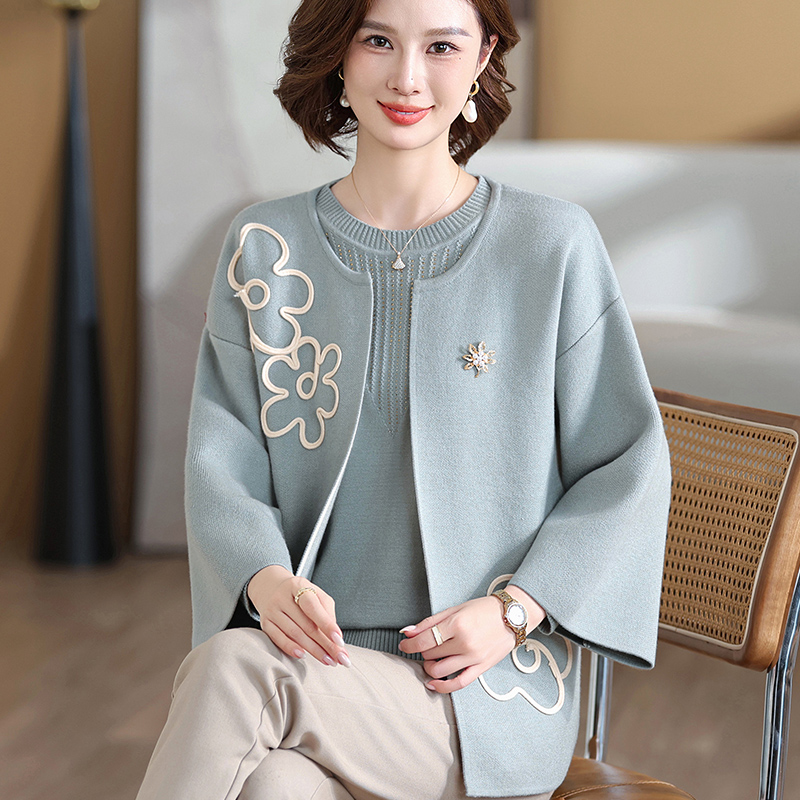 妈妈装 针织开衫 短款 气质两件套上衣春装 外套中老年女装 春秋新款