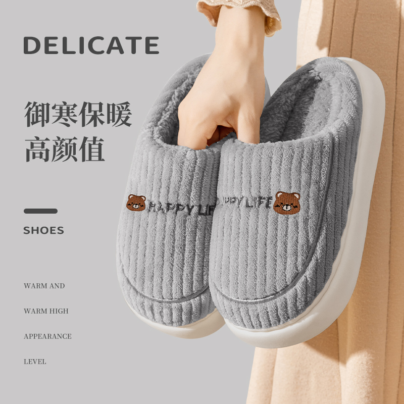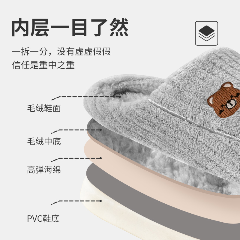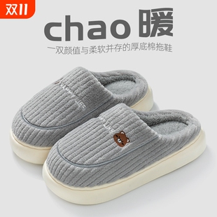 棉拖鞋 男款 秋冬季 室内家居厚底防滑家用保暖毛绒拖鞋 2024新款 男士