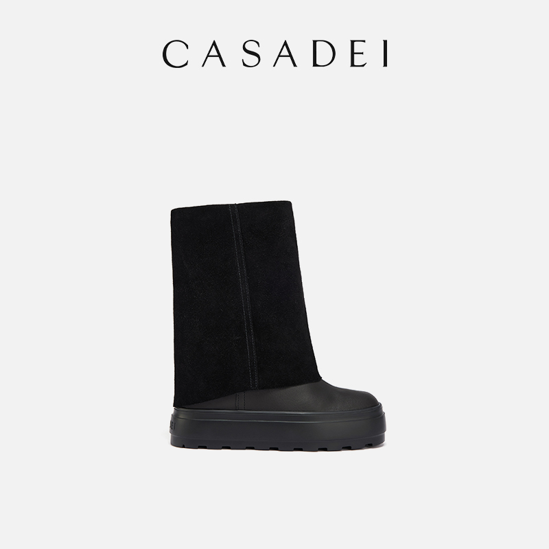仿麂皮两穿翻折靴 CASADEI 牛皮短靴 双11抢先购 内增高 卡桑蒂