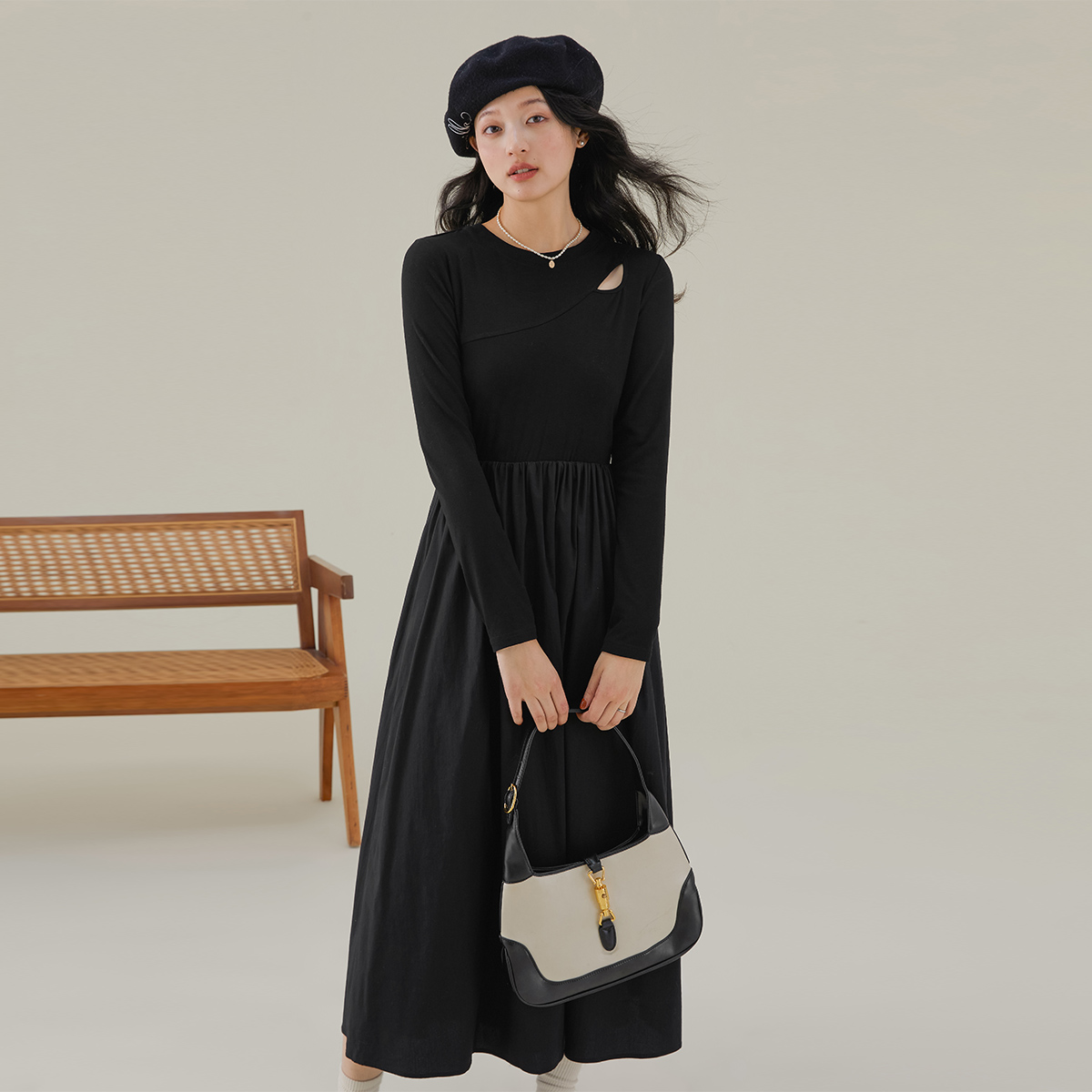 赫本风丝绒连衣裙小黑裙 珂莱蒂尔2025冬新法式 佟丽娅同款