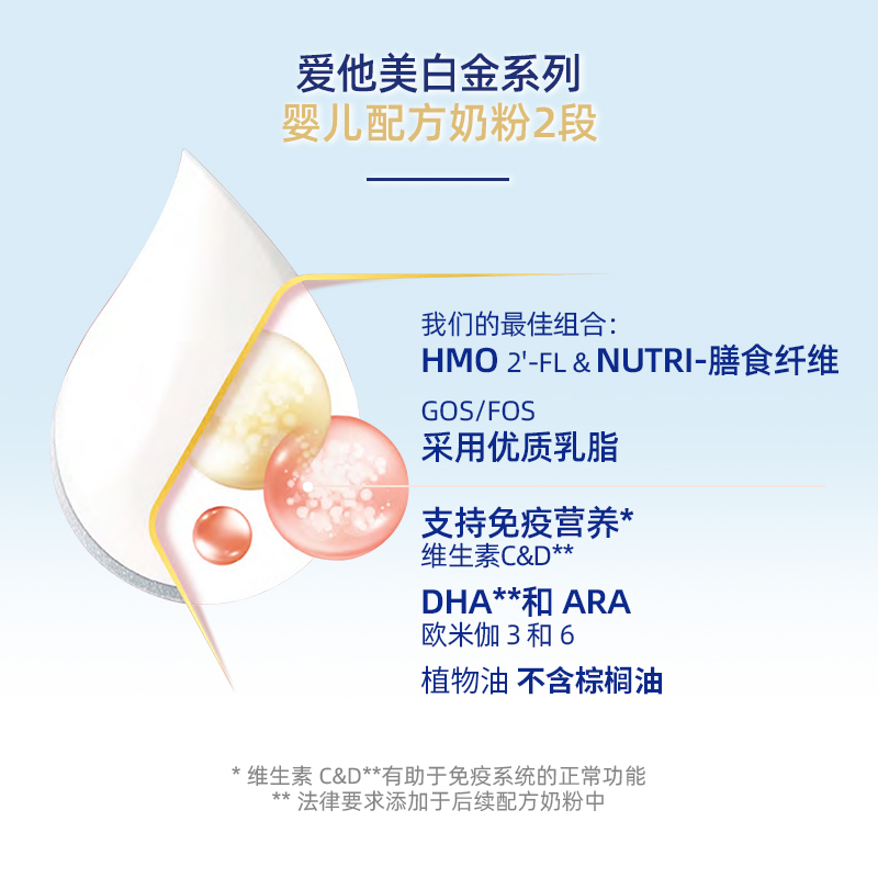 铂金2段婴幼儿配方牛奶粉800g 德国爱他美Aptamil德版 德文白金版