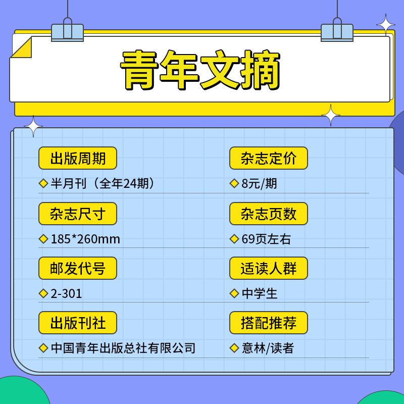 青年文摘杂志2026年1月起订 总48期 起订月可改 详询客服 读者 每月一发 文学文摘期刊书籍杂志铺 全年订阅