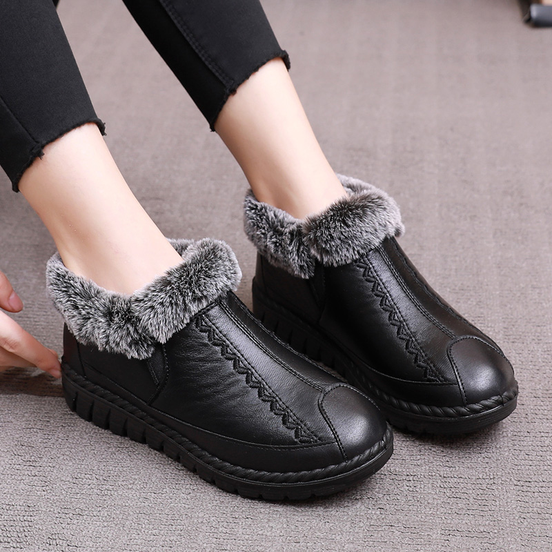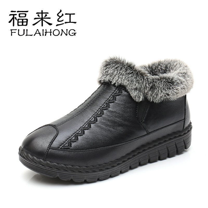 平底防滑雪地靴 加厚奶奶鞋 老北京棉鞋 女冬加绒保暖中老年人妈妈鞋