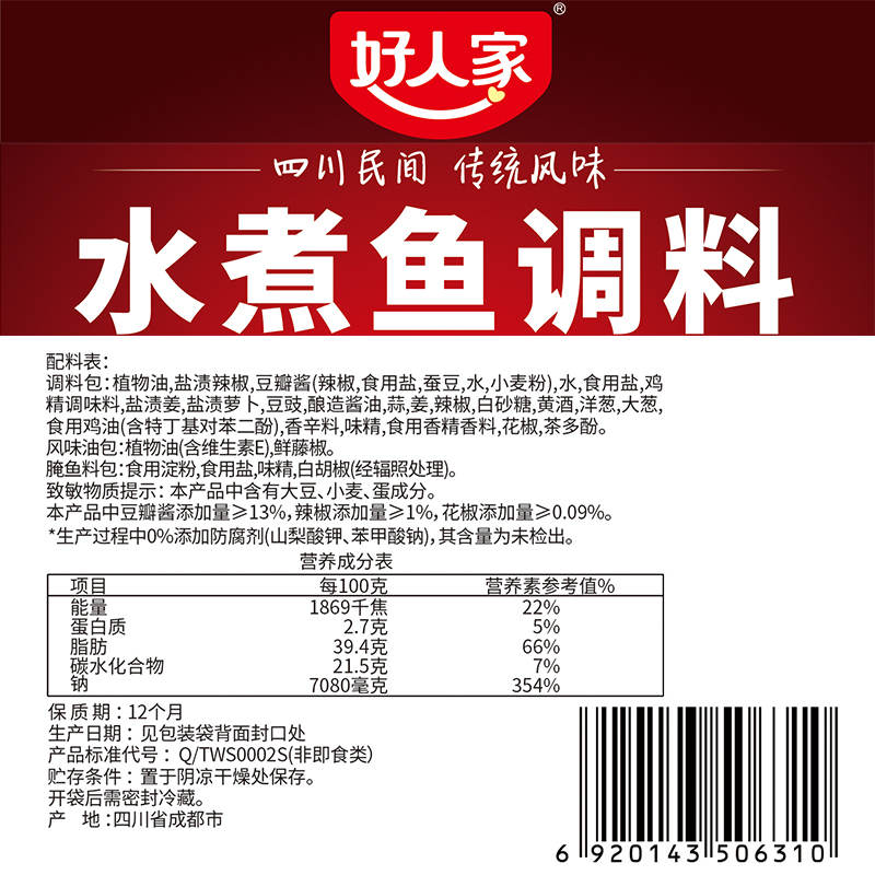 好人家水煮鱼调料150g麻辣水煮鱼酱料包做鱼料理包酸辣鱼调