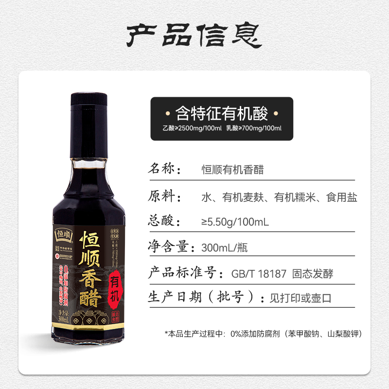 恒顺香醋300ml固态发酵有机醋粮食酿造镇江香醋特产 国家非遗
