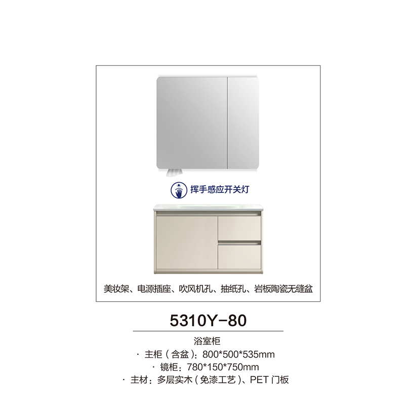 T&T卫浴浴室柜组合卫生间洗脸盆柜组合岩板陶瓷无缝盆浴室柜5310Y