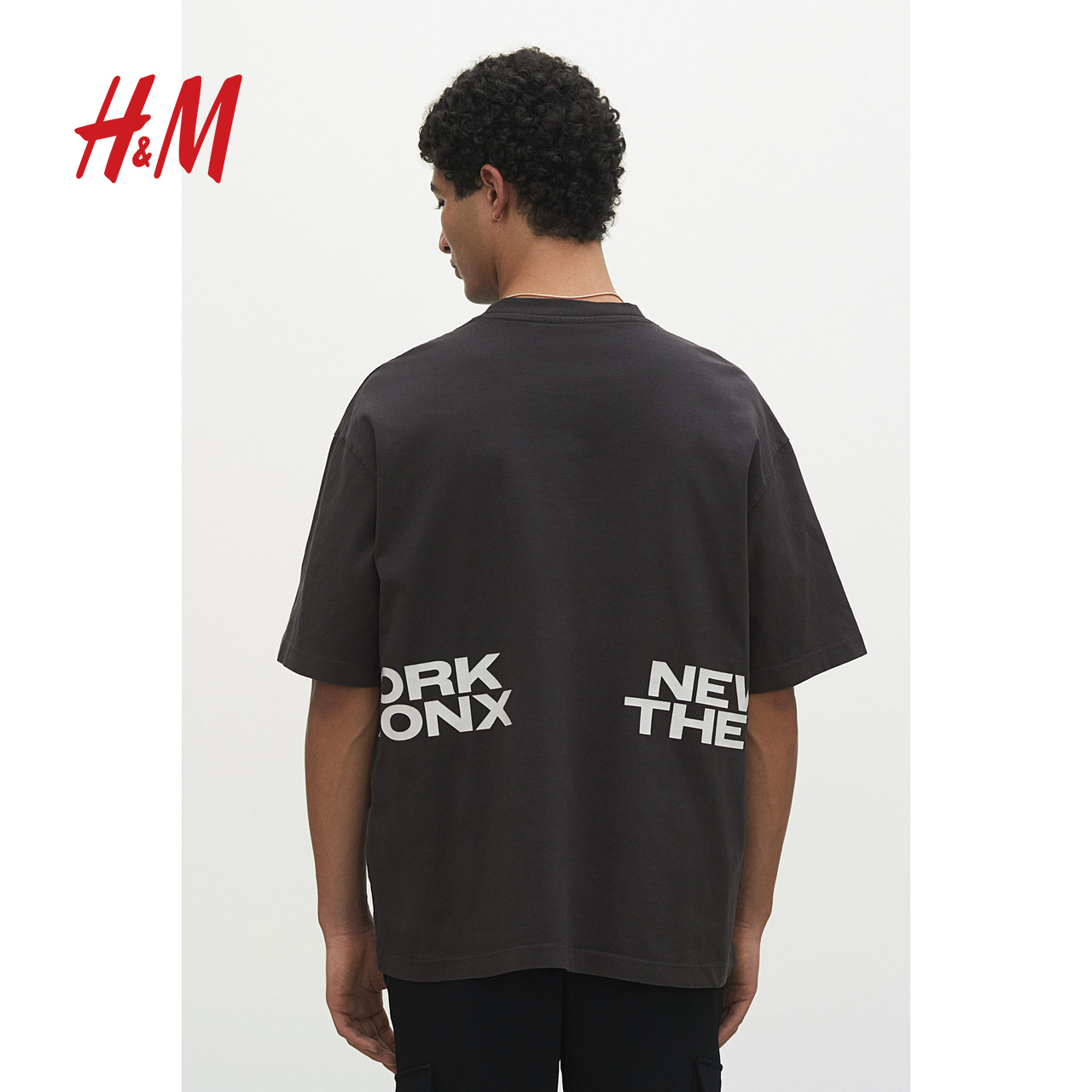 印花圆领棉质潮流宽松水洗短袖 HM男装 新款 T恤2025秋季 1261706 女装
