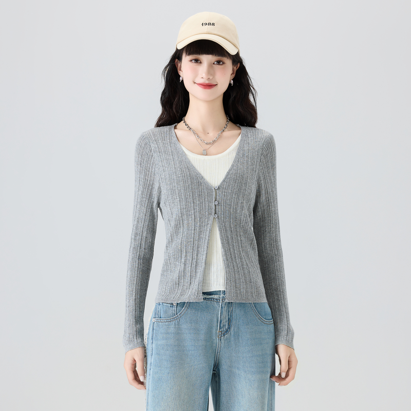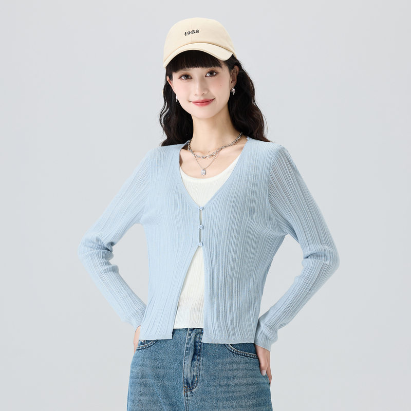 洋气v领打底针织衫 小个子短款 修身 2025新款 上衣 内搭毛衣女春秋季