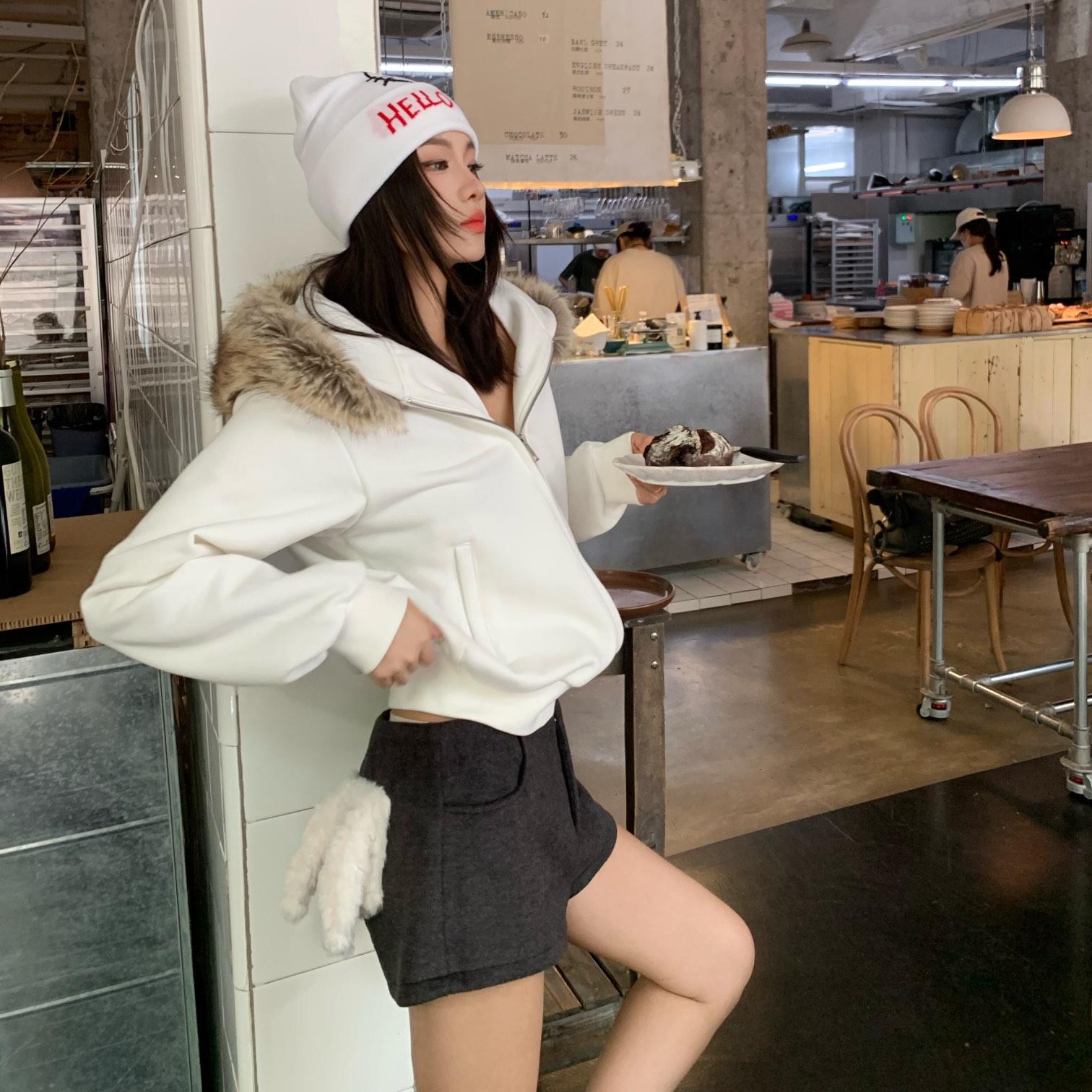 连帽卫衣打底衫 韩版 流行修身 上衣T恤女2025秋新款 拉链半开领长袖