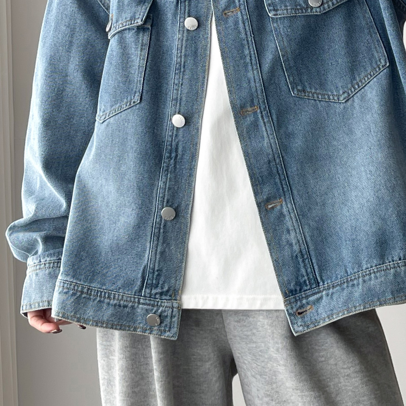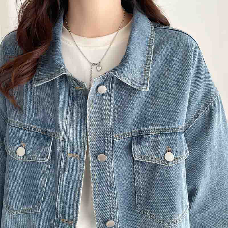 外套胖mm洋气减龄休闲上衣 宽松显瘦时尚 美式 水系牛仔夹克2025秋季