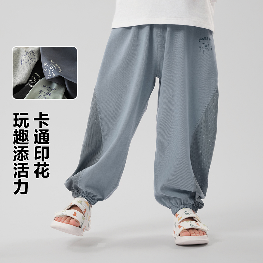 轻薄长裤 小童儿童宝宝裤 夏季 童装 子 新款 右欧男童冰瓷棉无骨防蚊裤