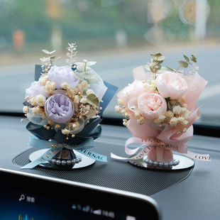 永生花牡丹花束车载摆件高级感汽车内饰装 饰中控台摆件新车礼物女