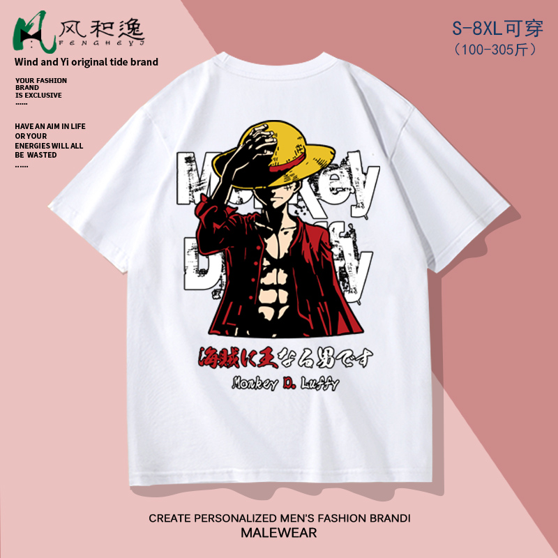 T恤男夏季 体恤衫 薄款 oversize二次元 纯棉半袖 海贼王路飞联名短袖