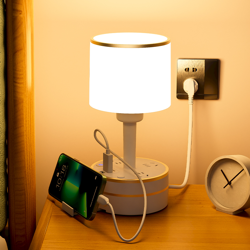 德国3合1可充电插座台灯卧室床头灯家用多功能LED护眼阅读小夜灯