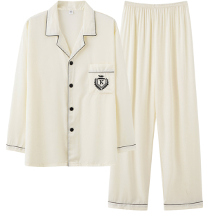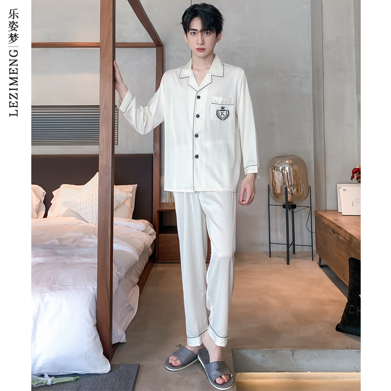 家居服套装 高级感夏季 冰丝凉感青年ins风长袖 乐姿梦睡衣男春秋款