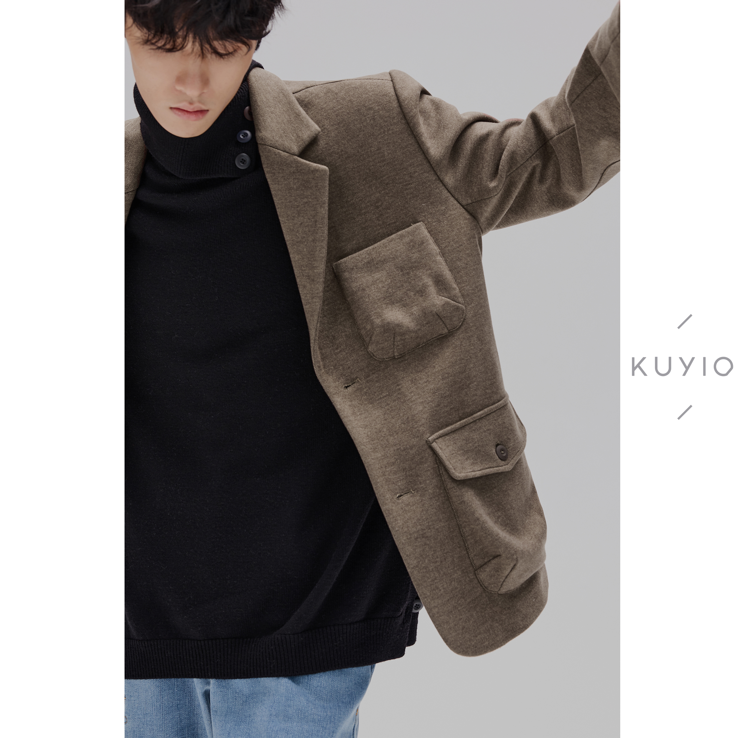 立体多口袋微宽松休闲西装 KUYIOU 工装 毛呢 外套男 复古阿美猎装
