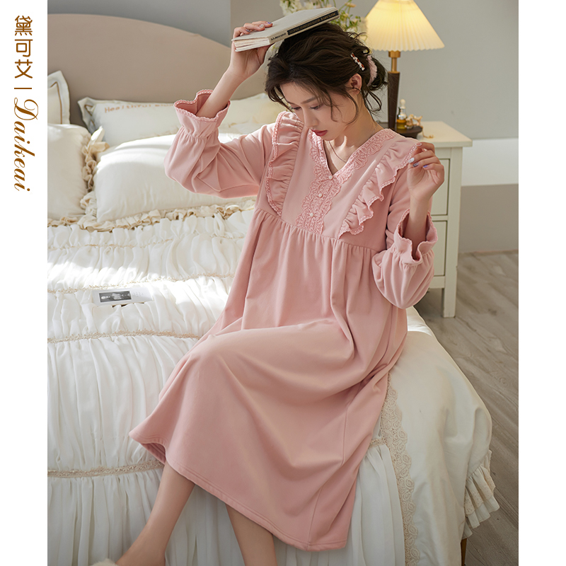 保暖家居服D 睡衣套装 MIIOW 猫人睡裙女秋冬宽松半边绒加绒加厚款
