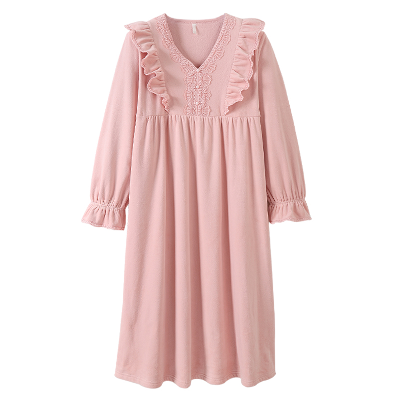 白雪公主睡衣女秋冬珊瑚绒睡衣女长款 家居服睡衣D 睡袍睡裙女冬季