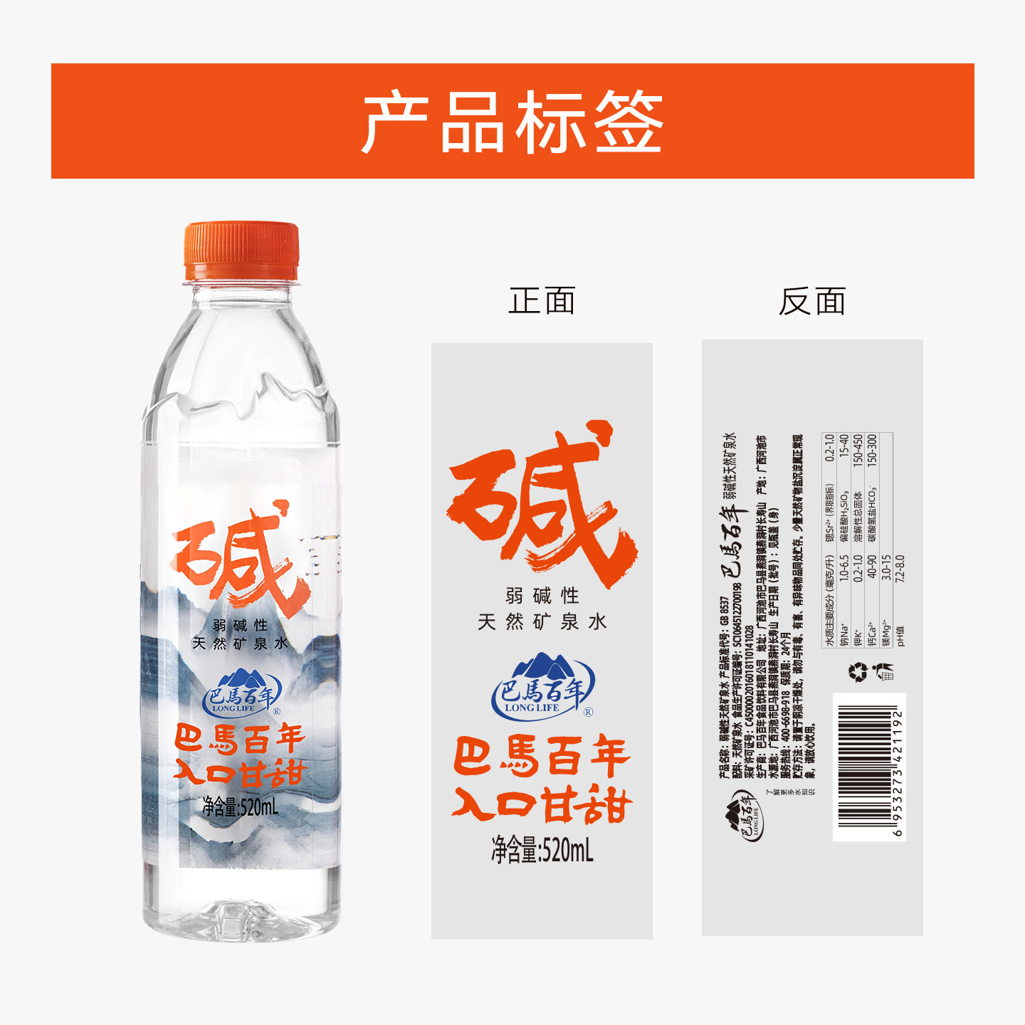 包邮 巴马百年弱碱性天然矿泉水520ml 24瓶低钠小分子团饮用水整箱