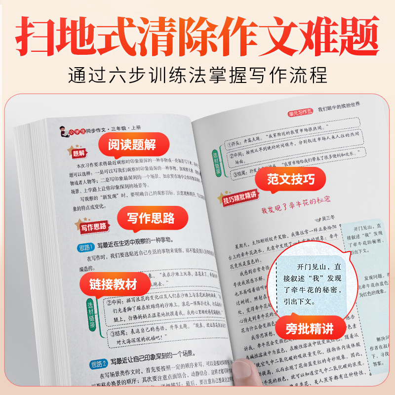 优秀作文仿写语文作文书阅读理解专项训练精选素材全解新概念 小学生3年级作文书大全部编版 2024正版 三年级同步作文上册下册人教版